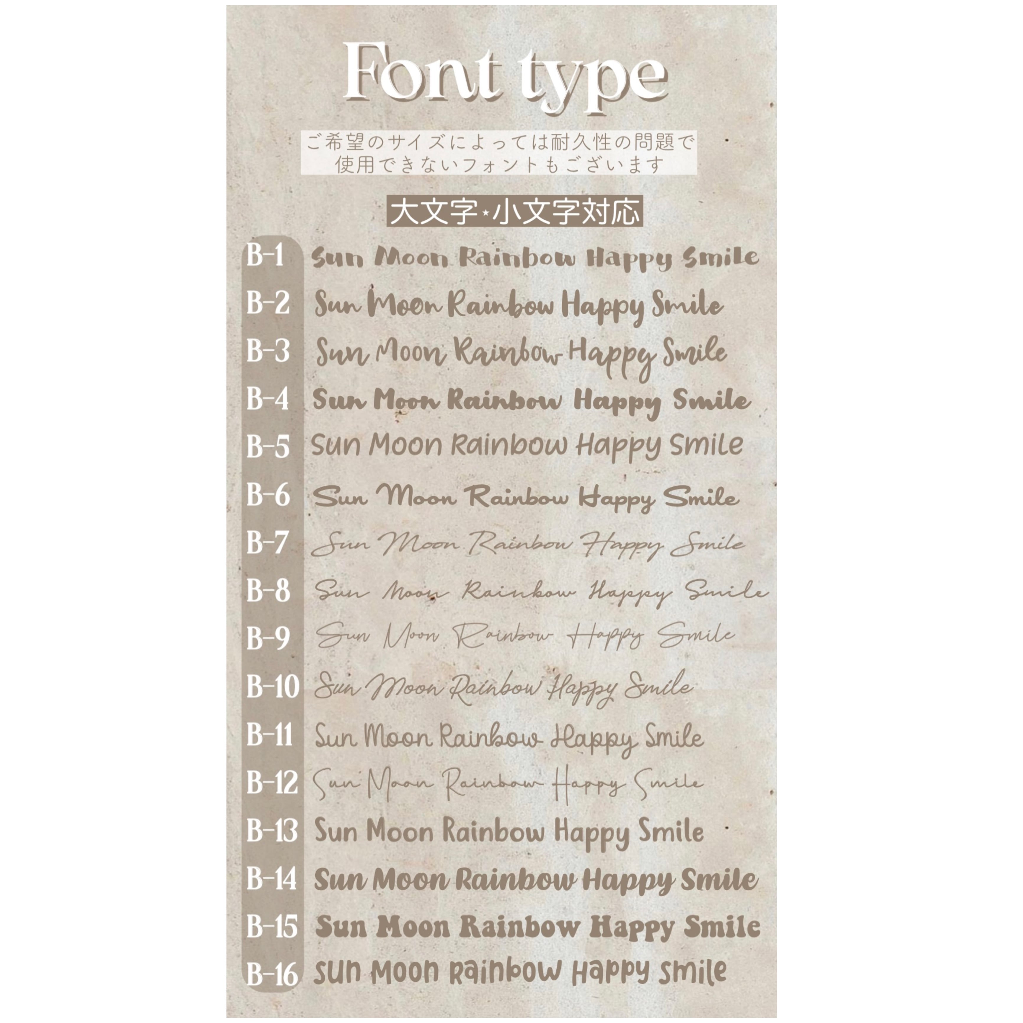 フォント2種類とカラー(1種)をお選び頂き