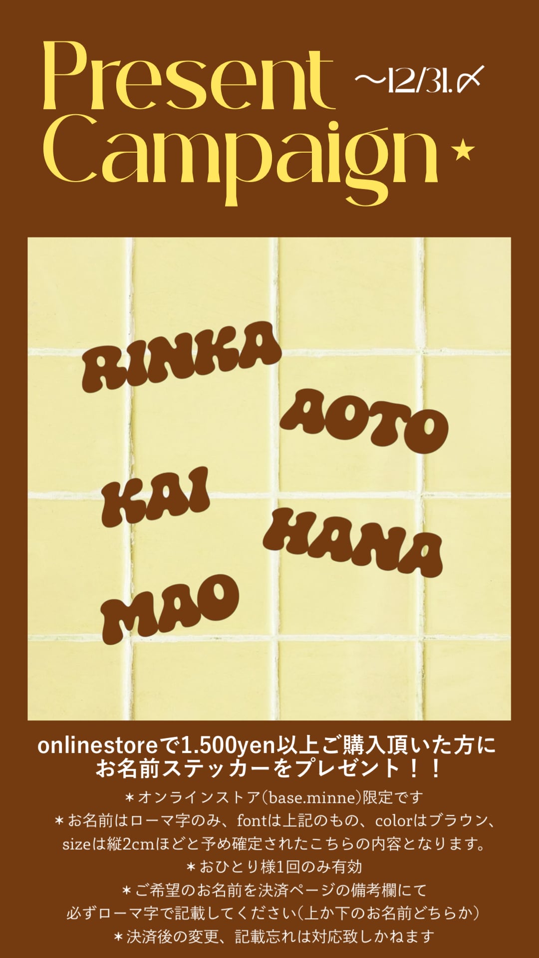 *お名前はローマ字のみ、fontは上記のもの、colorはブラウン、