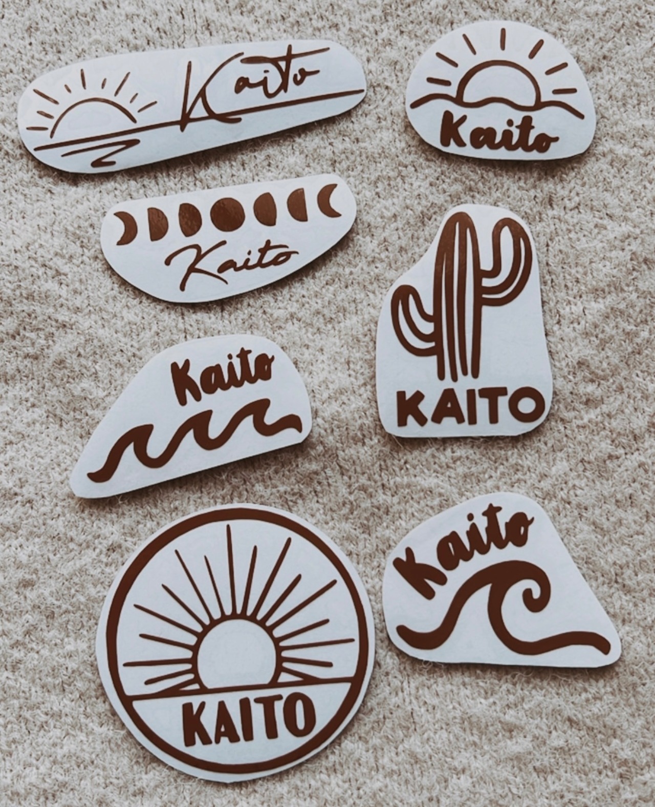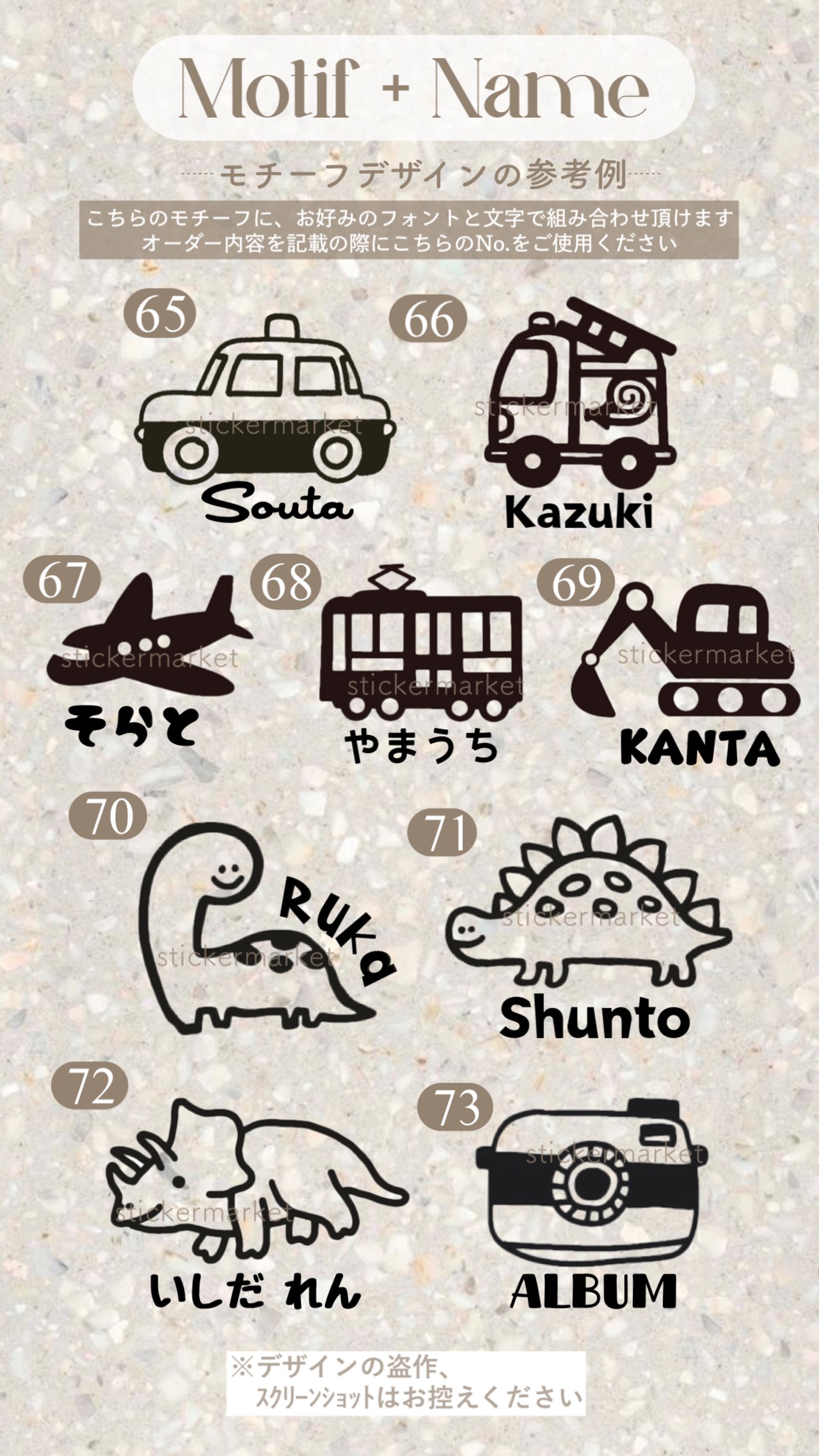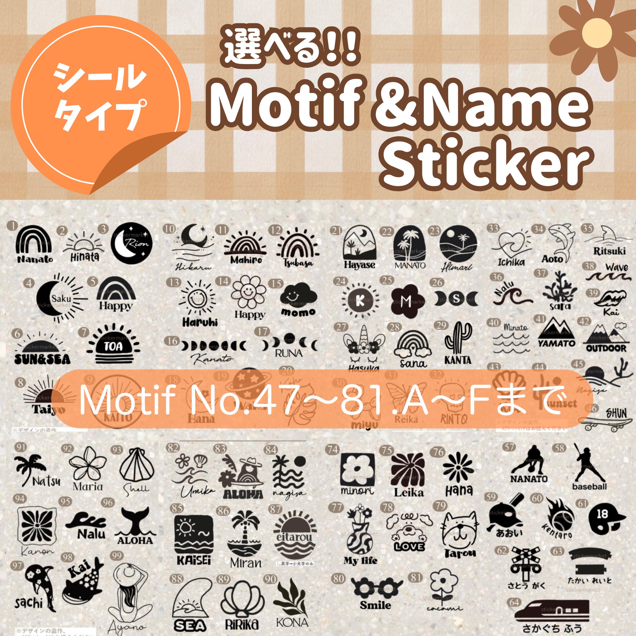 お名前入り防水ステッカー❁選べるMotif 47〜81.A〜F |水筒・お弁当箱に♪
