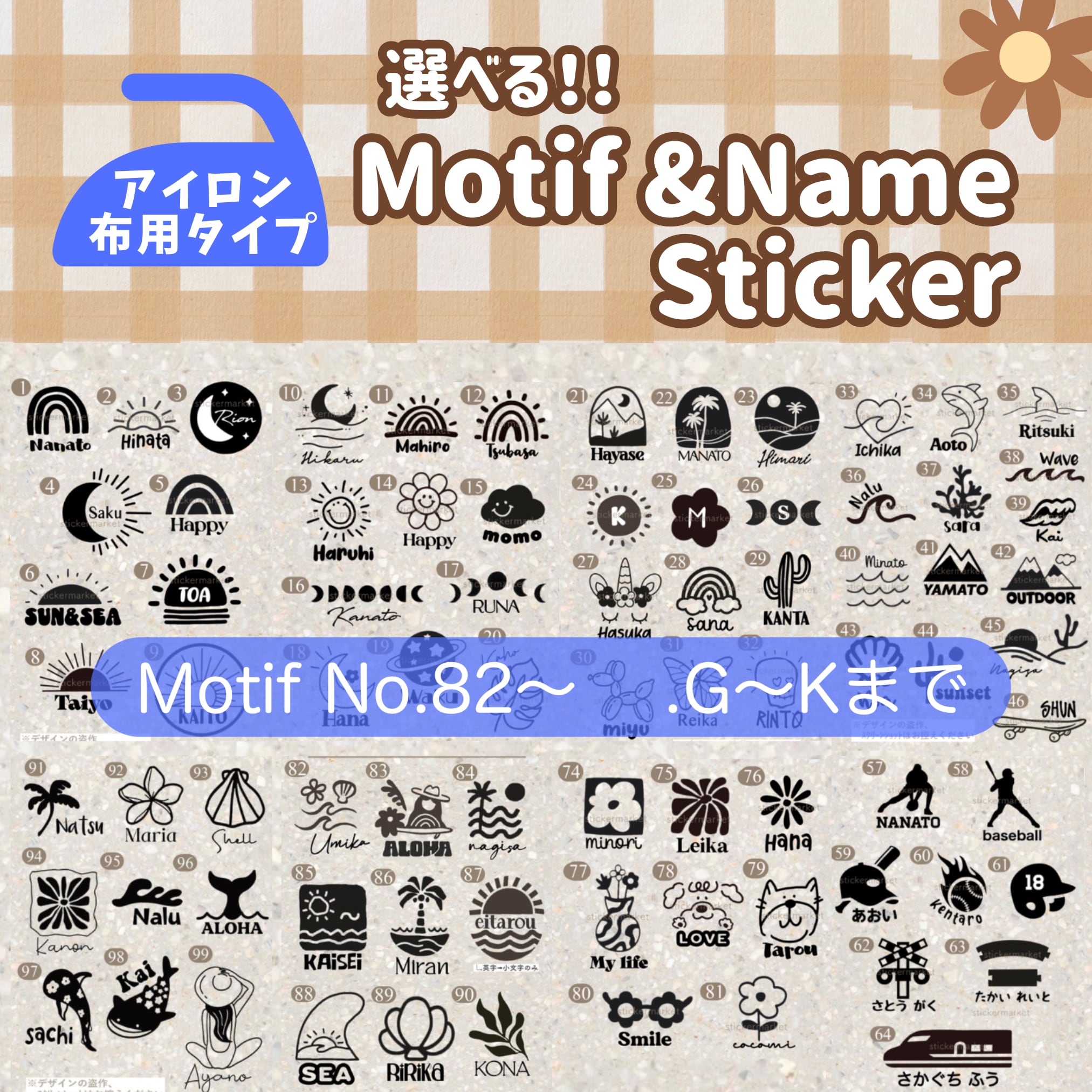 選べる❁ Motif + Nameアイロンステッカー 82〜90.G〜K
